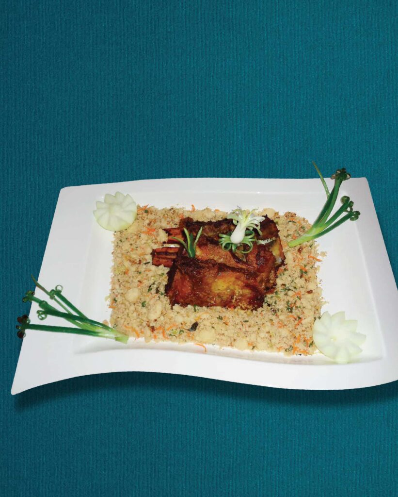 IN a big serving dish make a bed with couscous and top up with the ribs with the gravy. Can also serve it separately
