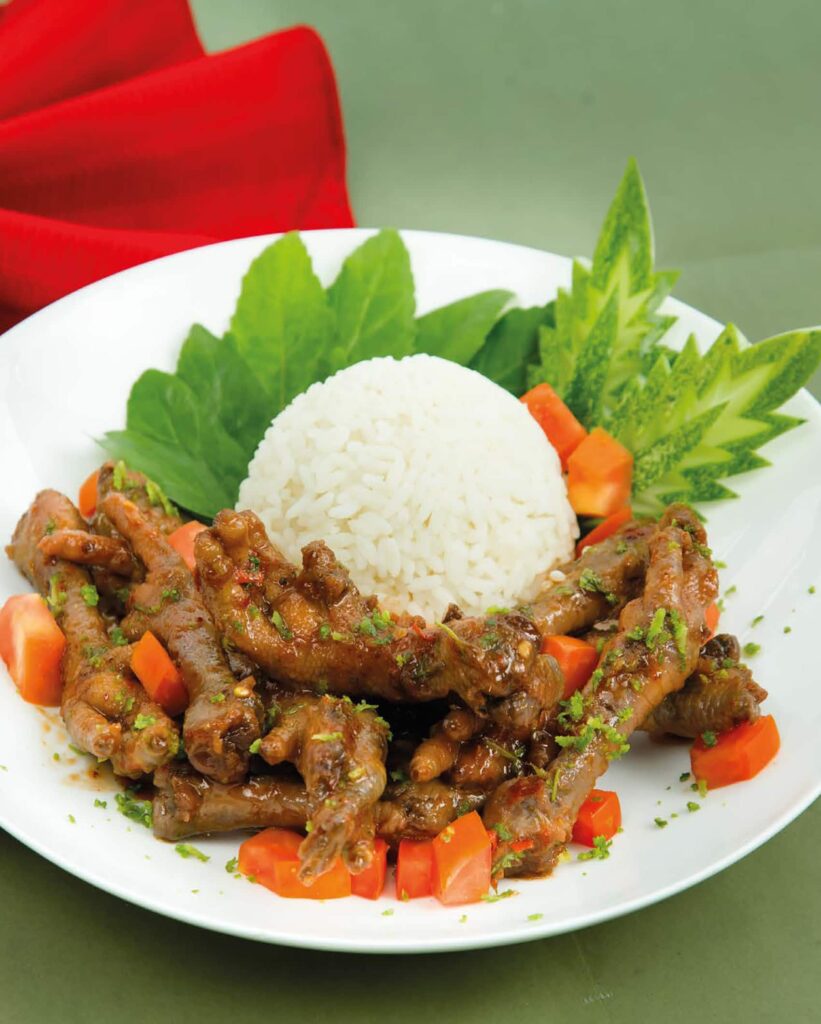 HEAT a pan, add 2 tablespoons of oil, and fry the paste until the aroma develops. Add the chicken feet. Mix well to incorporate. Add the stock.