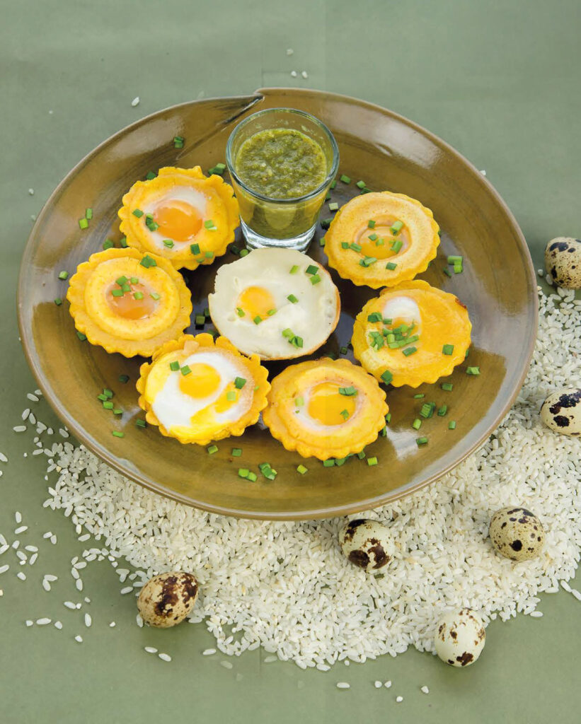 চালের পিঠার সাথে কোয়েলের ডিমের পোঁচ