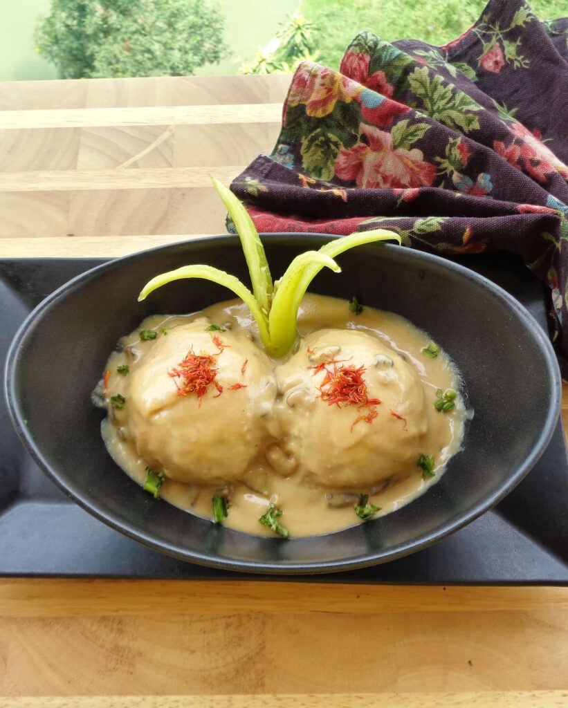 HEAT a large steamer with water, over medium heat, place the cabbage balls in a tray and steam for about 30 minutes or until the cabbage is tender. Remove the balls from the steamer, place each ball in an individual serving bowl, and top it up with mushroom sauce.