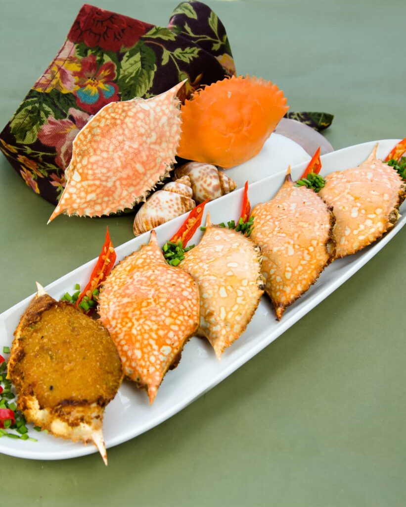 FILL the crab shells with the crab mixture. Dip the stuffed side of the crab in the beaten egg and coat it with breadcrumbs. Heat oil in a frying pan, and fry the crumb-coated side on low heat until light golden brown. Serve hot.